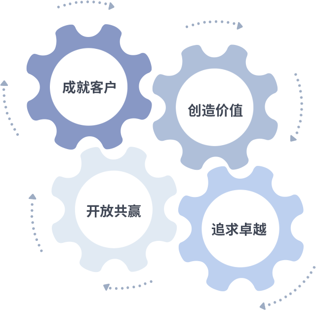 成就客户是一切决策的出发点,创造价值是衡量所有工作的标准,追求卓越是304am永利集团做事做人的态度,开放共赢是304am永利集团的格局也是最终的结果。价值观的齿轮环环相扣,推动着组织里的每个人不断向前。